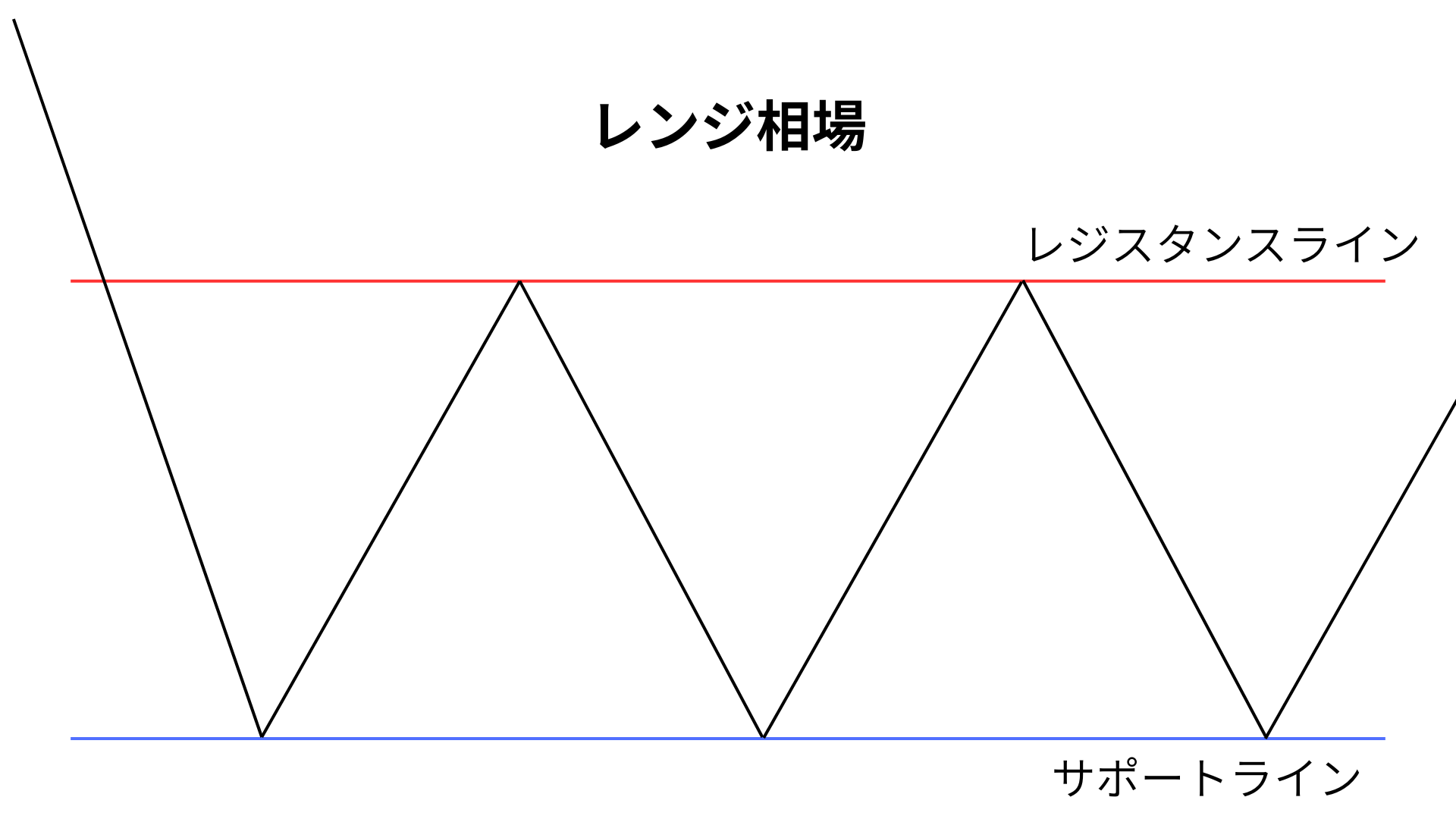 レンジ相場とは、一定の値幅の中でレート行ったり来たりしている相場